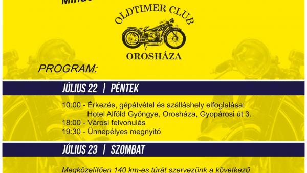 Az Orosházi Technikai Sportok Egyesülete július 22-e és 24-e között ismét megrendezi a Veteránjármű Találkozót és Horváth Károly Emlékversenyt.