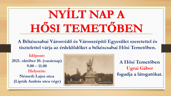 Az I. világháborúban elesett katonák emléke előtt tiszteleg a Békéscsabai Városvédők és Városszépítők Egyesületének új kezdeményezése: az egyesület tagjai ugyanis abban a békéscsabai hősi temetőbe vezetnek majd körbe csoportokat, amely egyébként nem fogad látogatókat.