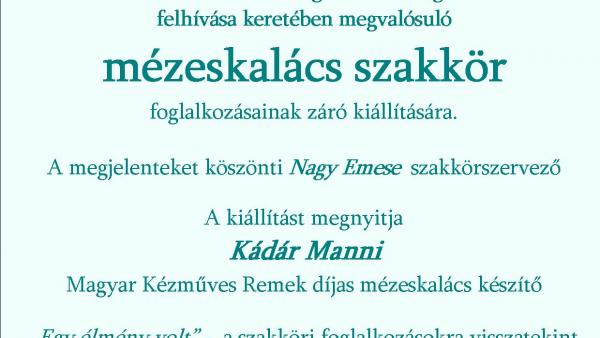 Április 29-én, 18 órakor a Nemzeti Művelődési Intézet "Tudásunkkal kézen fogva a közösségekért" felhívása keretében megvalósuló mézeskalács szakkör foglalkozásainak záró kiállítása nyílik a Lencsési Közösségi Házban.