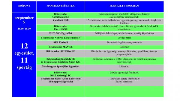 Szeptember 5-én, 12 egyesület képviselői mutatkoznak be a Szent István téren, akik a közös sportolásra, játékra is lehetőséget biztosítanak az érdeklődőknek.